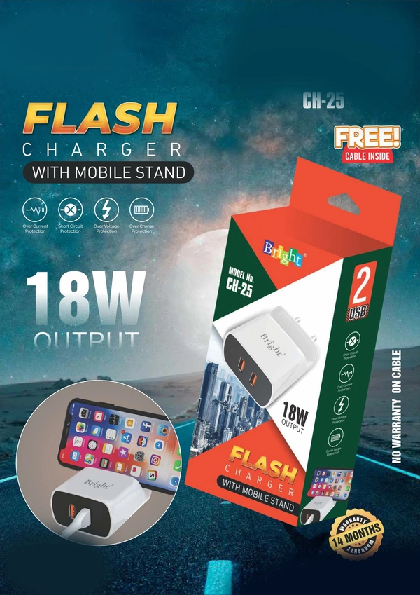 18 Watt Flash Charger With Mobile Stand Type C Cable